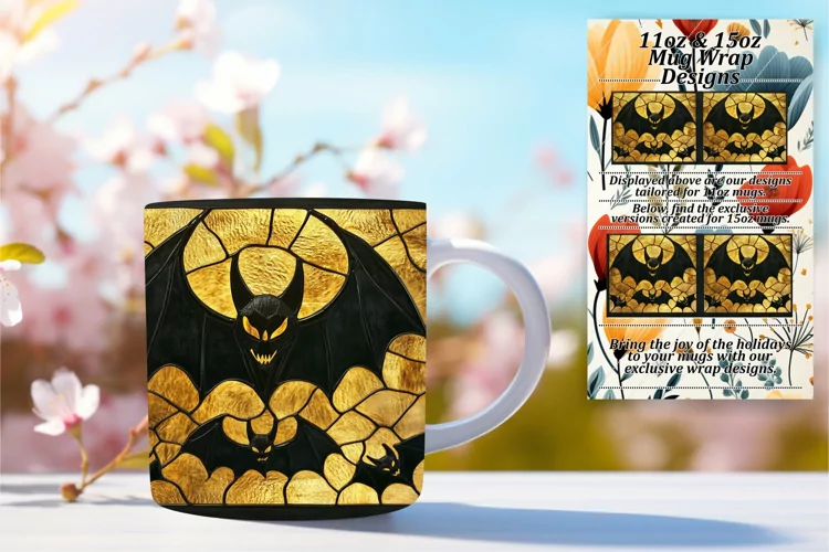 Spooky Autumn Stained Glass Mug 11oz 15oz Wrap Design