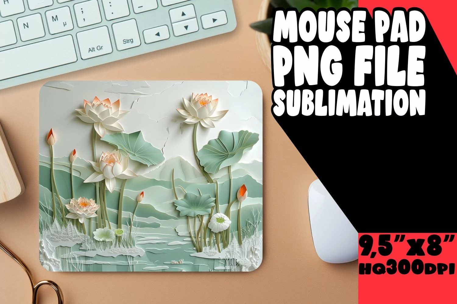 Mouse Pad 3D Flower Hole Sublimation PNG example image 1