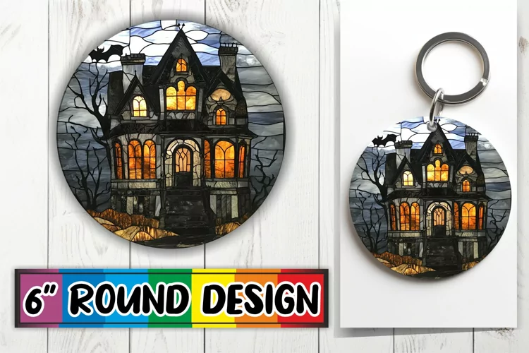 Similar Design Products to Artistic Halloween Stained Glass Round Design Keychain