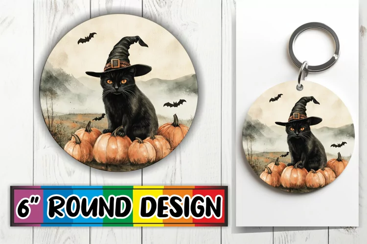 Similar Design Products to Black Cat Halloween Round Design for Sublimation Keychain