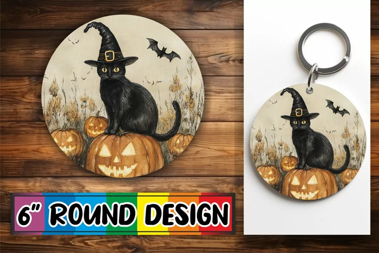 Cute Halloween Cat Round Design Sublimation Fall