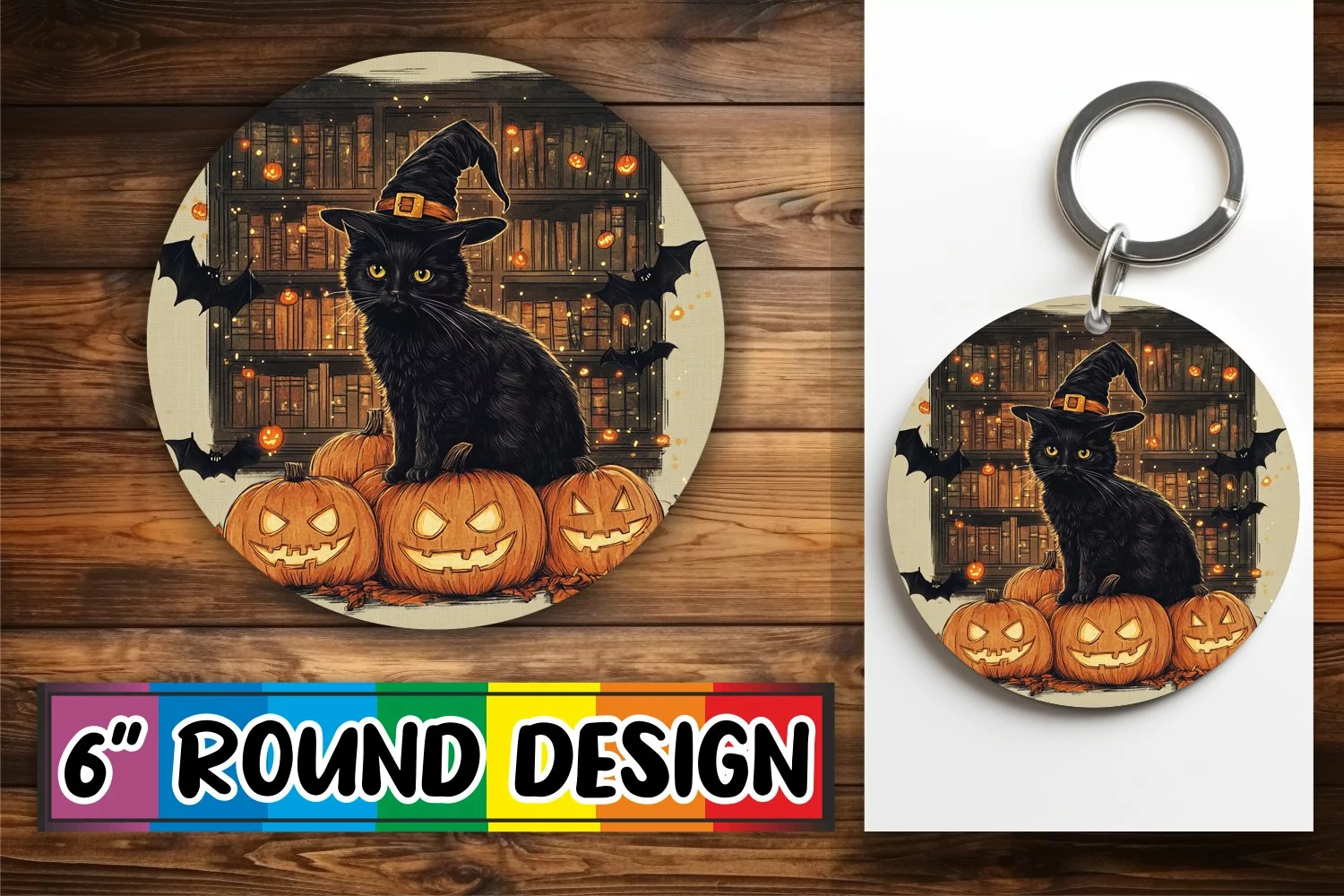 Halloween Black Cat Round Design Sublimation for Fall example image 1
