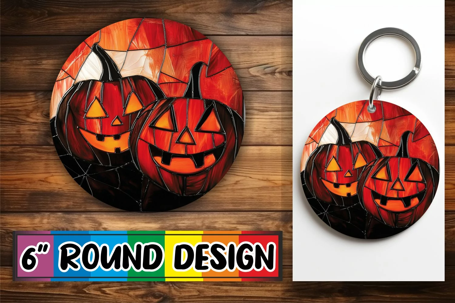 Similar Design Products to Luminous Halloween Stained Glass Round Design Keychain