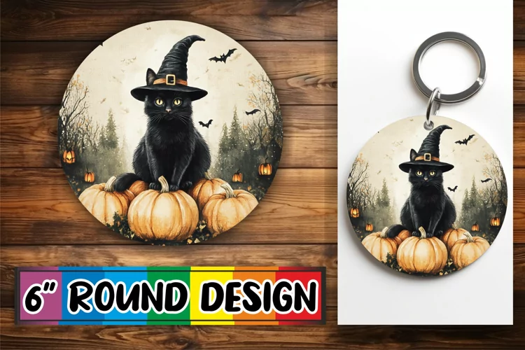 Halloween Cat Round Design for Sublimation Autumn/Fall
