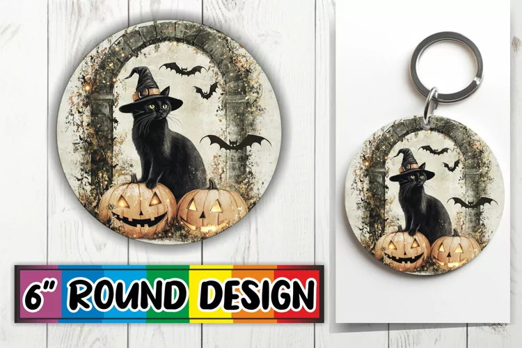 Halloween Cat Round Design for Sublimation Fall Projects