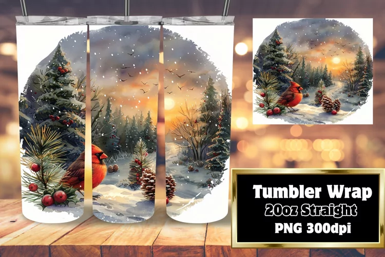 Winter Watercolor Cardinal Bird Wrap | 20oz Tumbler example image 1
