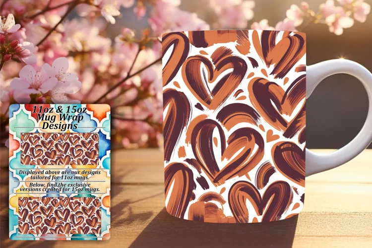 Elegant Heart Mug Wrap Pattern Sublimation 11oz 15oz