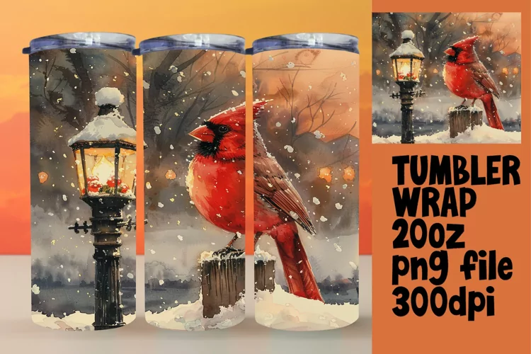 Holiday Sublimation Wrap | Cardinal Bird 20oz Tumbler example image 1