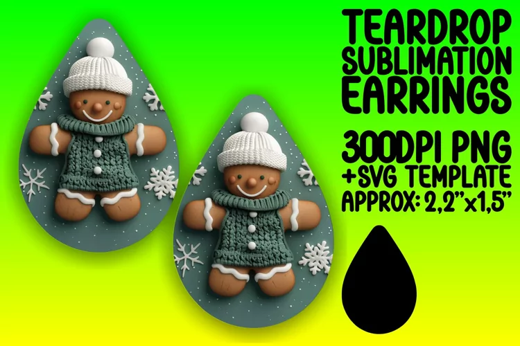 3D Gingerbread Teardrop Earrings Design Holiday Sublimation