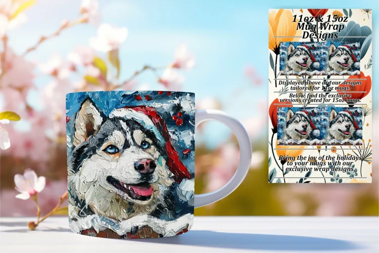Festive Peeking Dog Mug Wrap Holiday Winter Sublimation