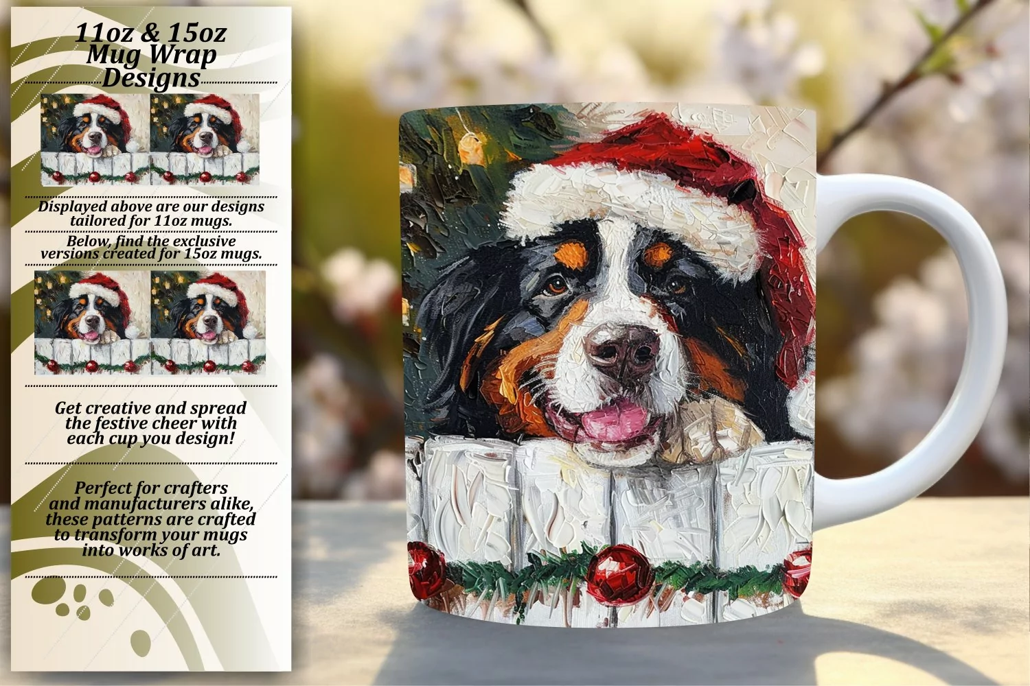 Similar Design Products to Sublimation Mug Wrap Holiday Peeking Dog Winter Art 11oz