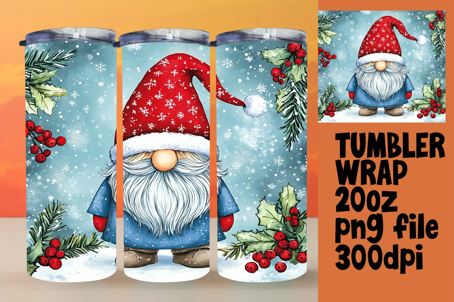 Holiday Gnome Tumbler Wrap 20oz Sublimation PNG example image 1