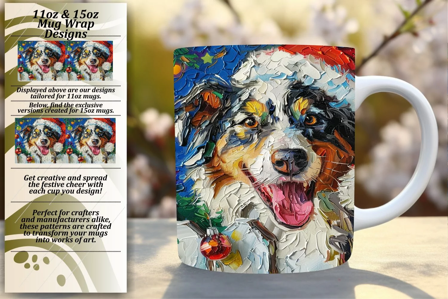 Holiday Winter Sublimation Peeking Dog Mug Wrap Design 11oz