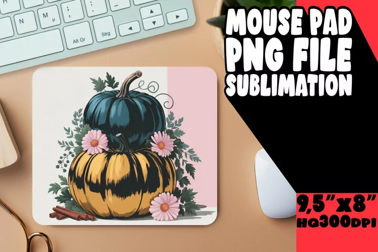 Festive Pumpkin and Floral Mouse Pad Sublimation