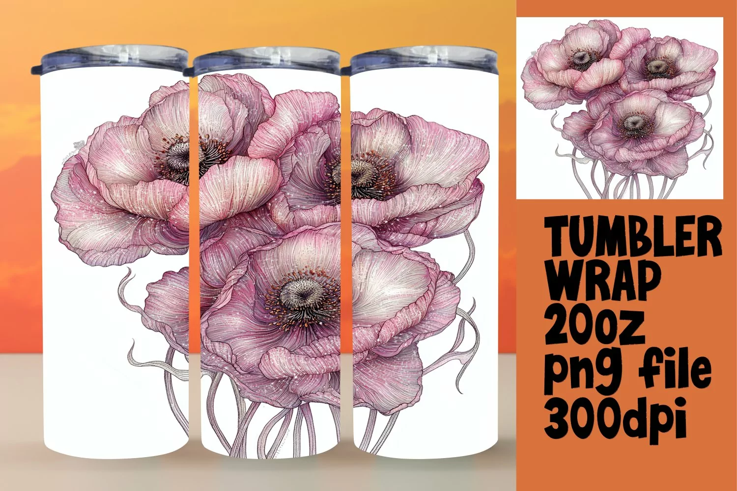 20oz Sublimation Wrap Tumbler Watercolor Flower Design example image 1