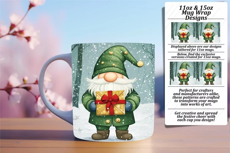 Watercolor Winter Gnome Wrap for 11oz 15oz Mug