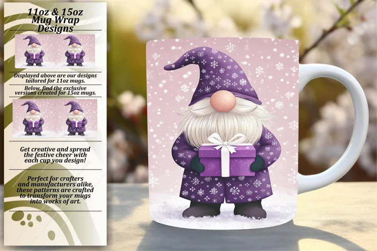 Festive Gnome 11oz 15oz Mug Wrap for Holiday Design
