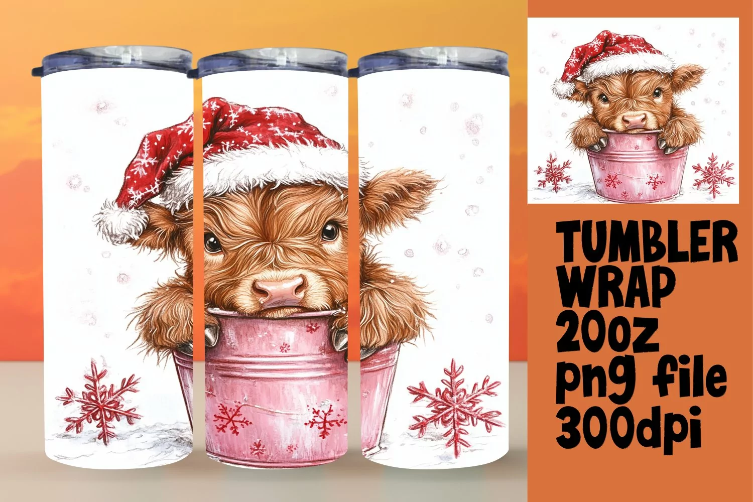 Christmas Cow Sublimation Wrap - Watercolor 20oz Design example image 1