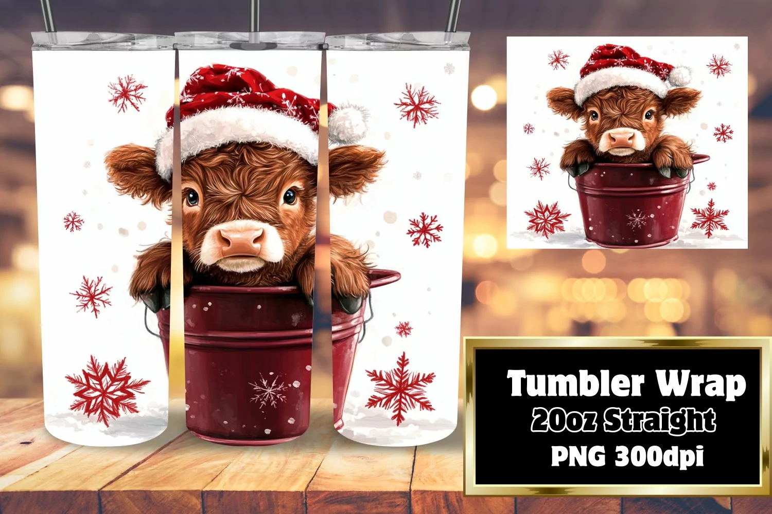 Watercolor Cow Christmas Wrap - 20oz Sublimation Tumbler example image 1