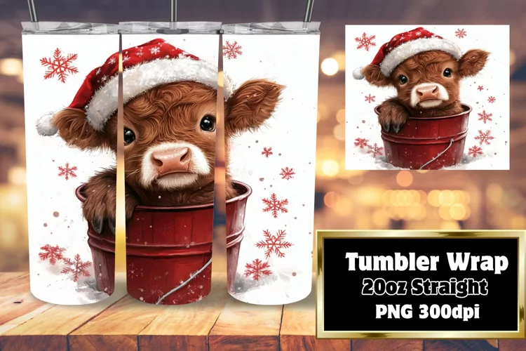 Similar Design Products to 20oz Watercolor Christmas Cow Wrap - Festive Tumbler Design