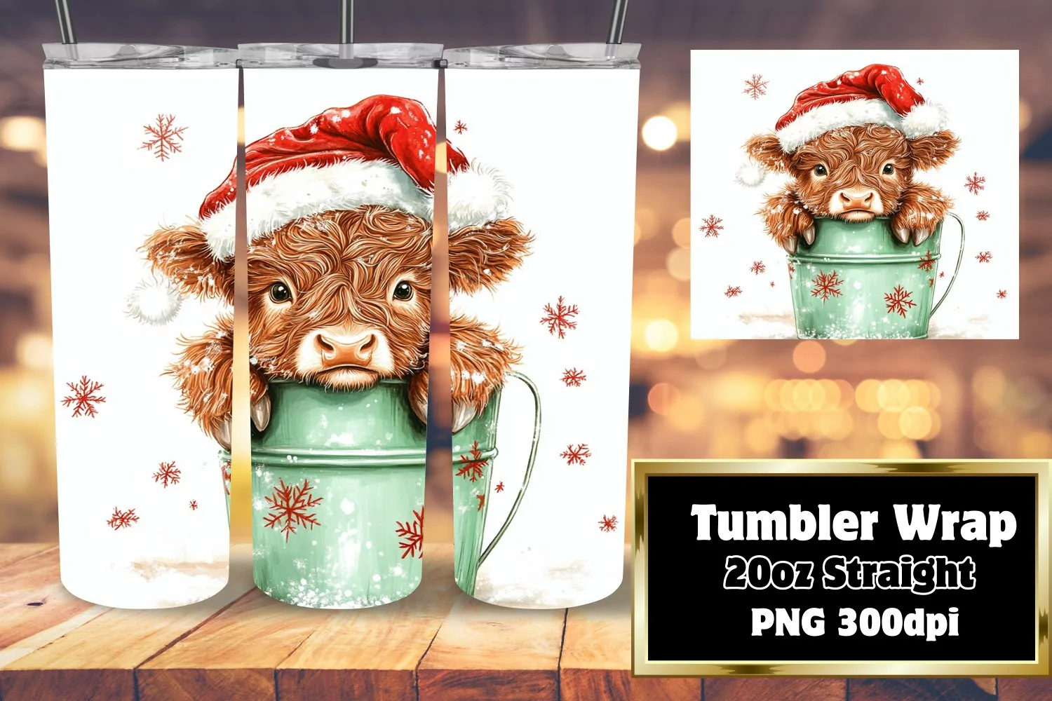 20oz Christmas Cow Tumbler Wrap - Watercolor Winter Design example image 1