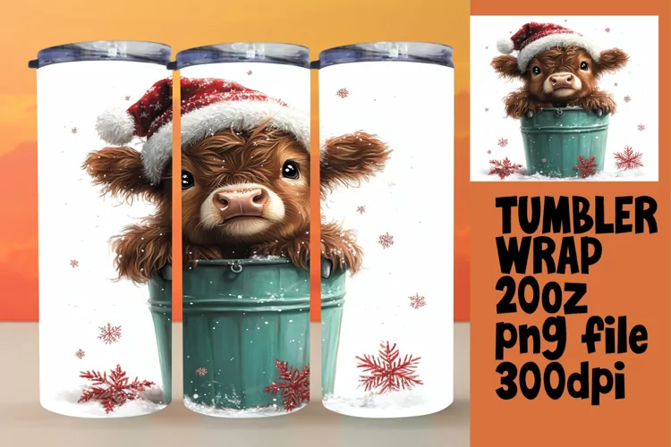 Watercolor Winter Cow Christmas Wrap - 20oz Tumbler Design example image 1