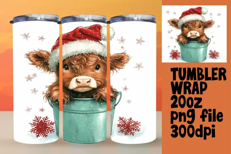 Christmas Watercolor Cow Wrap - 20oz Festive Tumbler example image 1