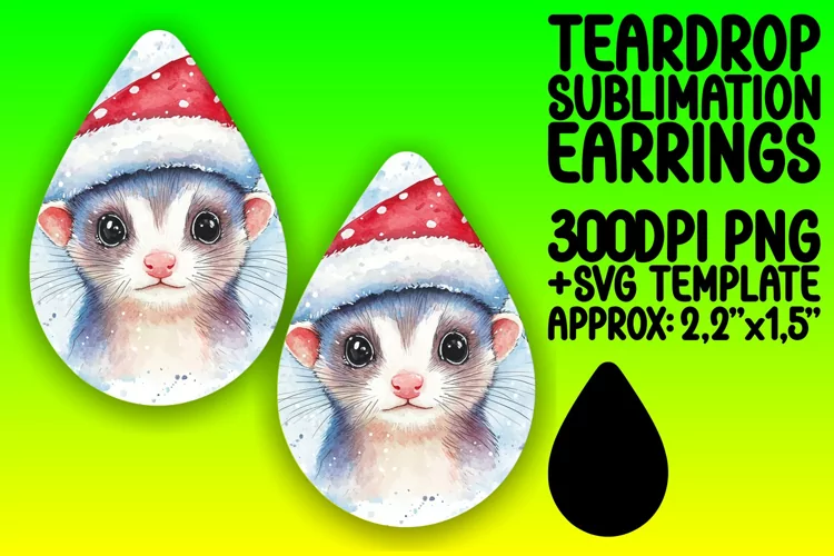 Cute Teardrop Earrings Design for Sublimation , Christmas Wa example image 1