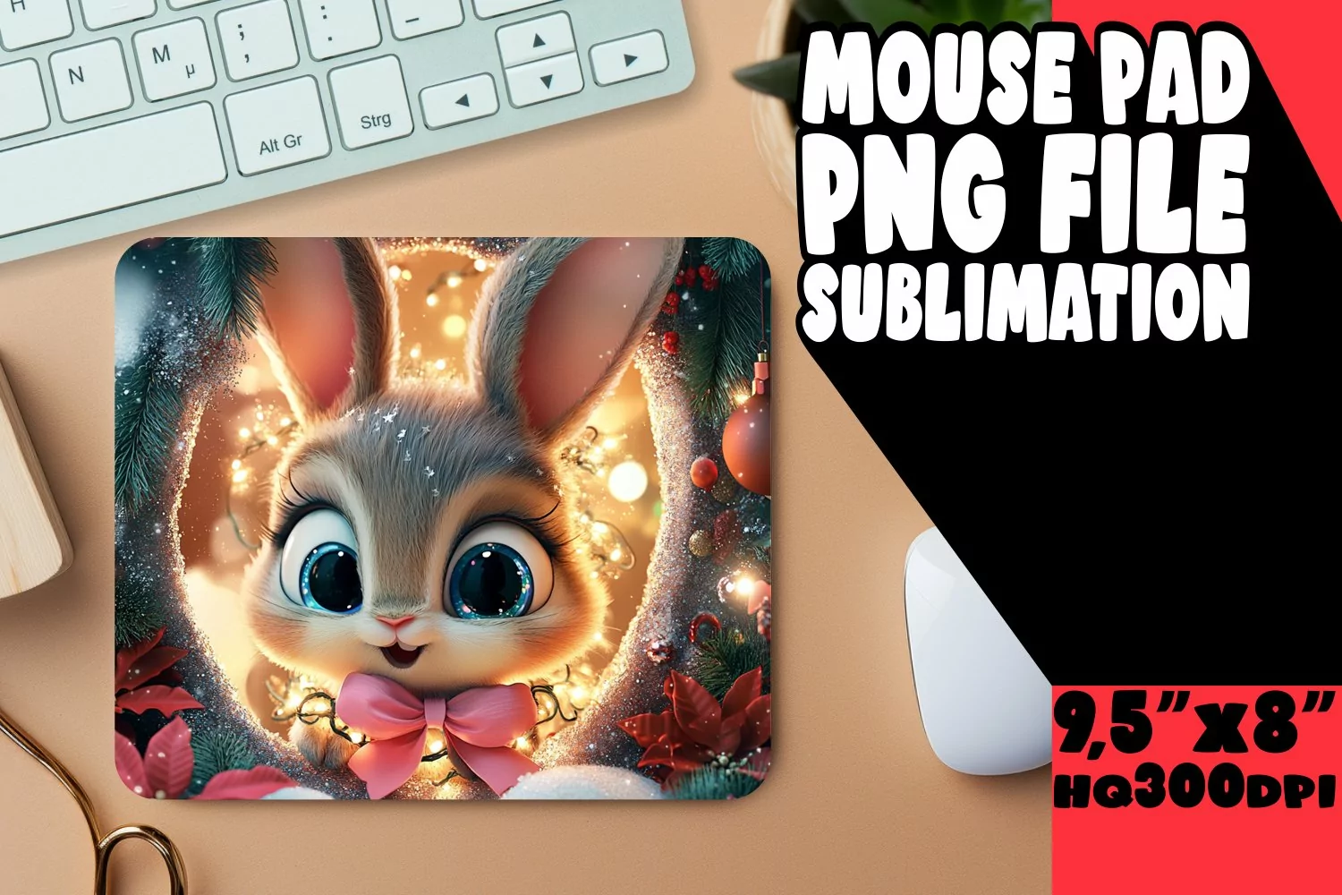 Whimsical Mouse Mat Sublimation, Christmas Animals
