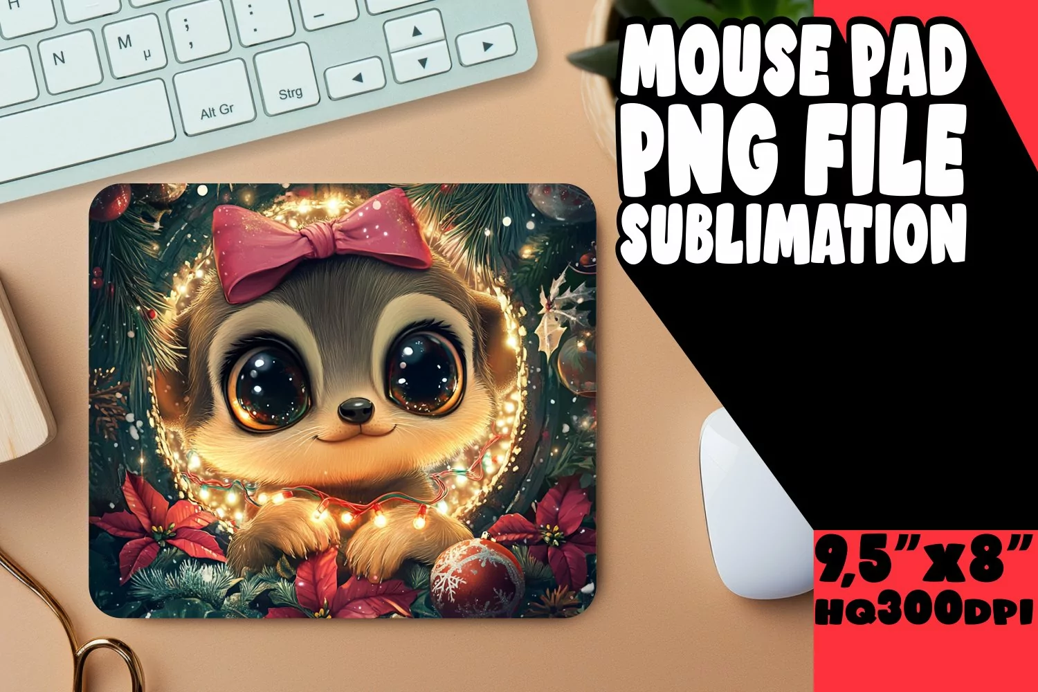 Sweet Desk Mat Sublimation Designs, Christmas Animals