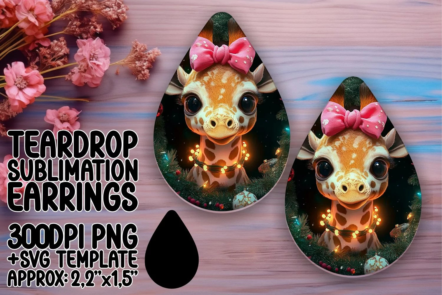 Vibrant Teardrop Earrings Template for DIY , Christmas Anima example image 1