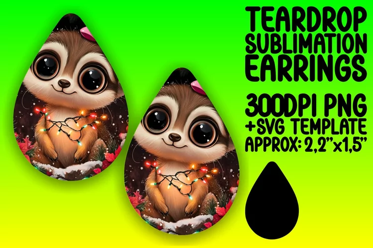 Lovely Teardrop Earrings Sublimation , Christmas Animals
