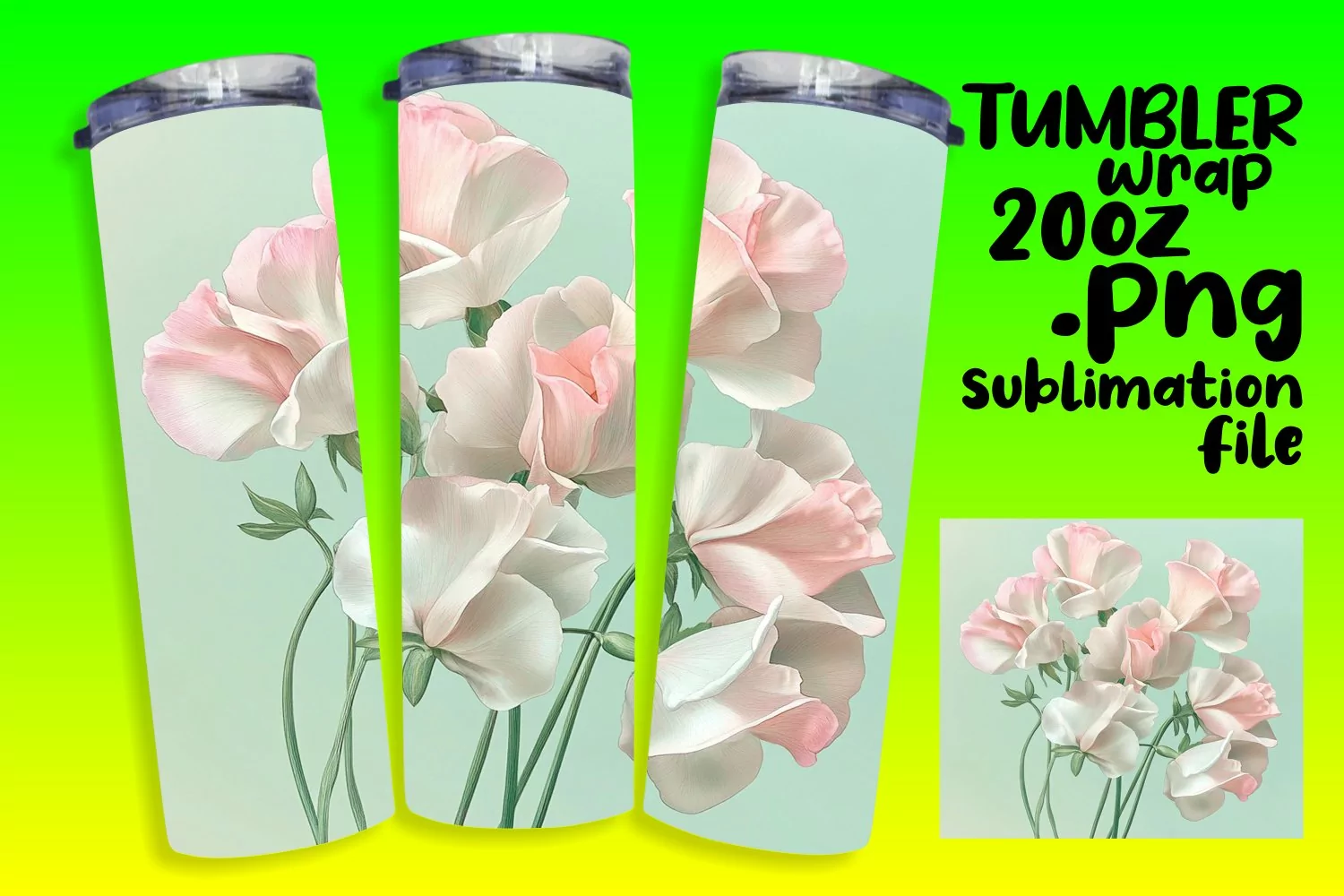 Watercolor Tumbler Wrap Design 20oz Sublimation Flowers