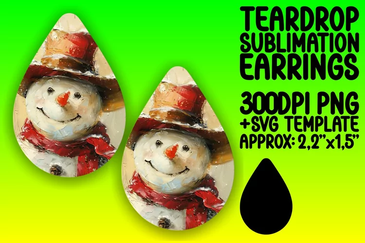Stylish Teardrop Earrings Sublimation , Snowman example image 1