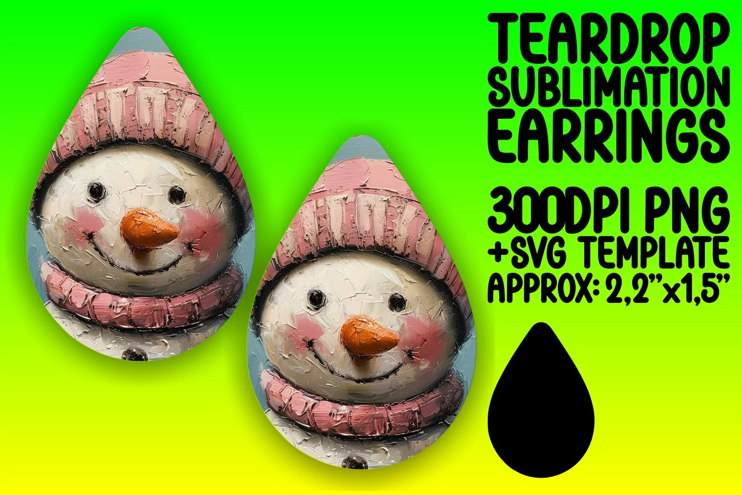 Gorgeous Teardrop Earrings Sublimation Art , Snowman example image 1