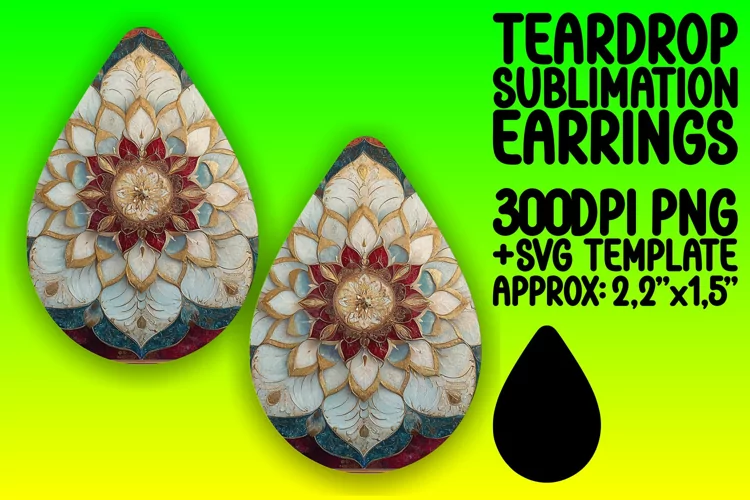 Fresh Teardrop Earrings Sublimation Art , Mandala example image 1