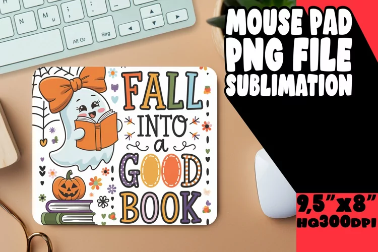 Whimsical Mouse Pad Design Sublimation, Ghost Books