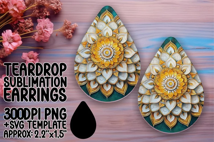 Bold Teardrop Earrings Sublimation Art , Mandala example image 1