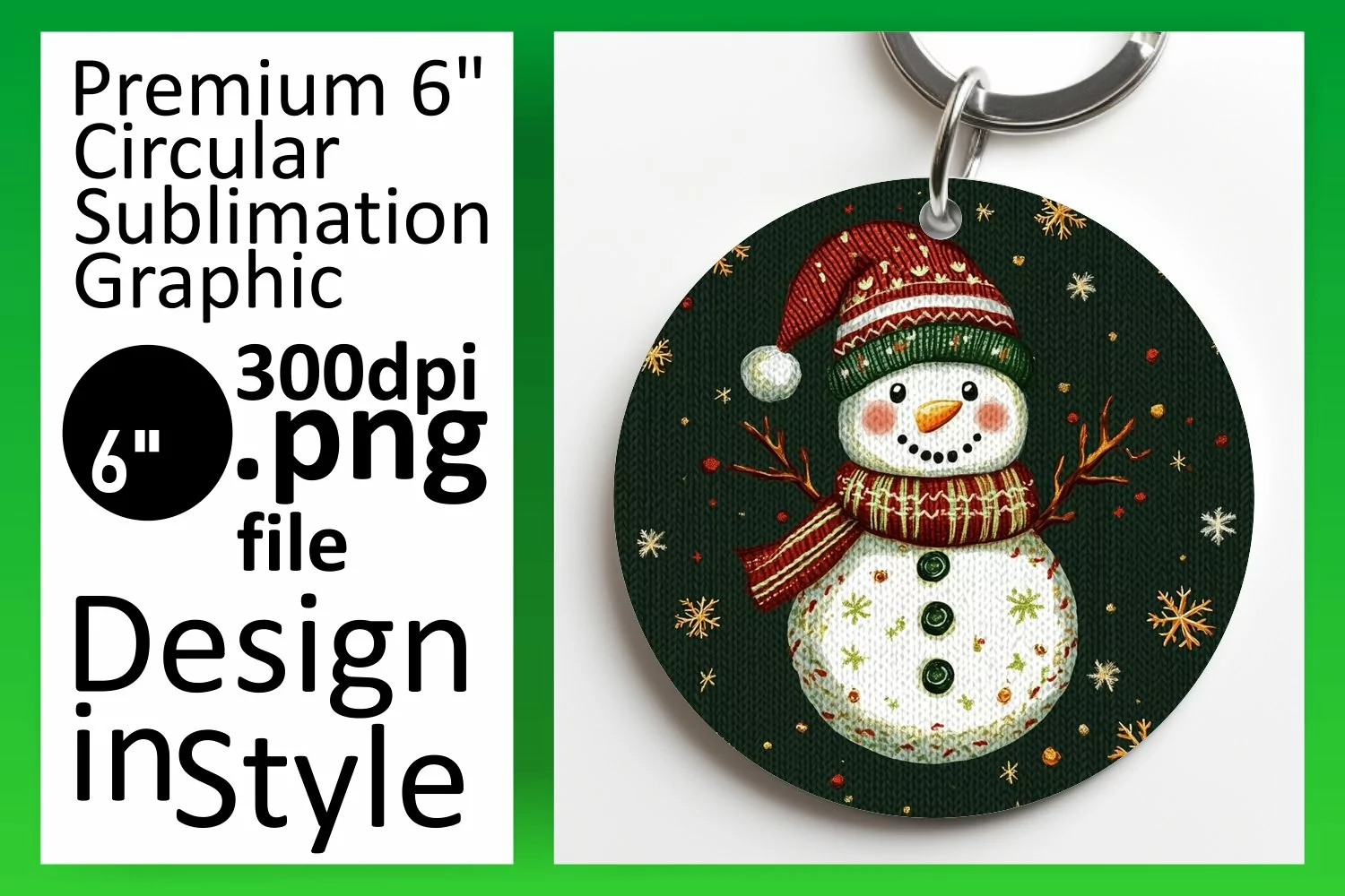 Sophisticated Round Design Keychain Template , Snowman example image 1