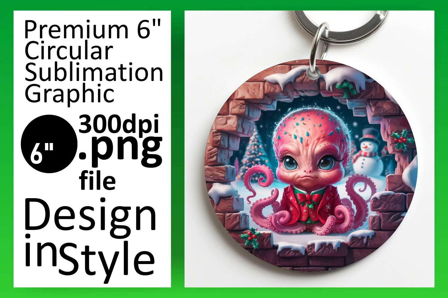 Artistic Keychain Circle Design Template , Xmas