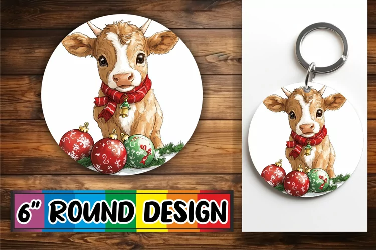 Charming Round Design Keychain Template , Xmas example image 1