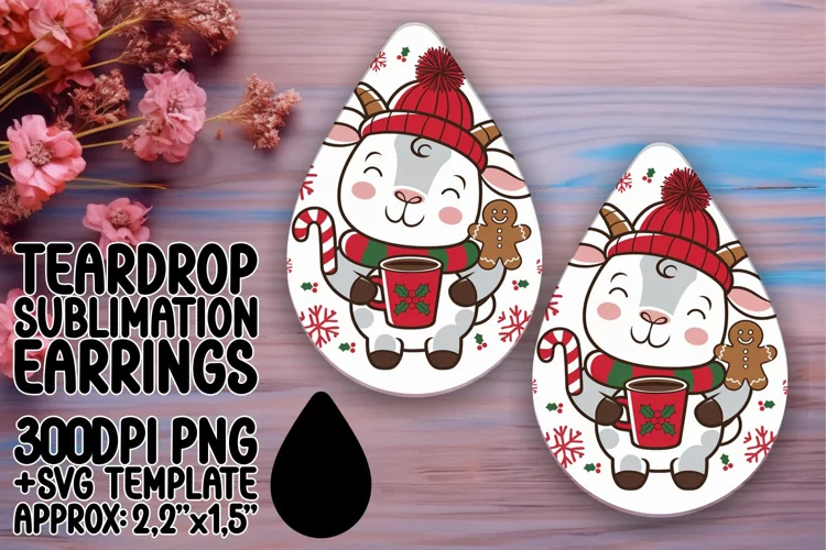 Unique Teardrop Earrings Design PNG , Christmas example image 1