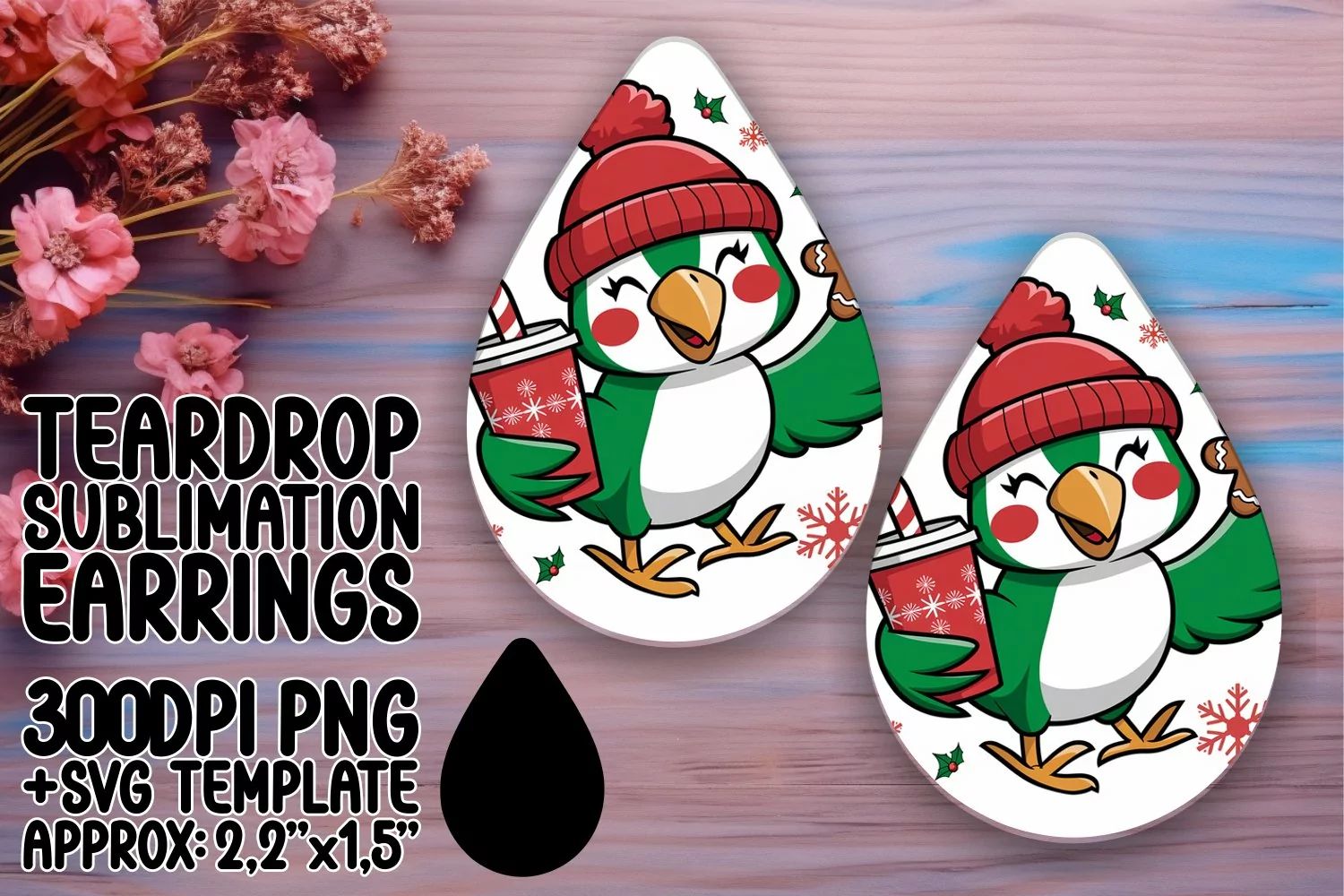 Bold Teardrop Earrings Sublimation Art , Christmas example image 1