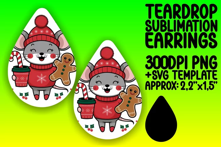 Vibrant Teardrop Earrings Template Art , Christmas example image 1