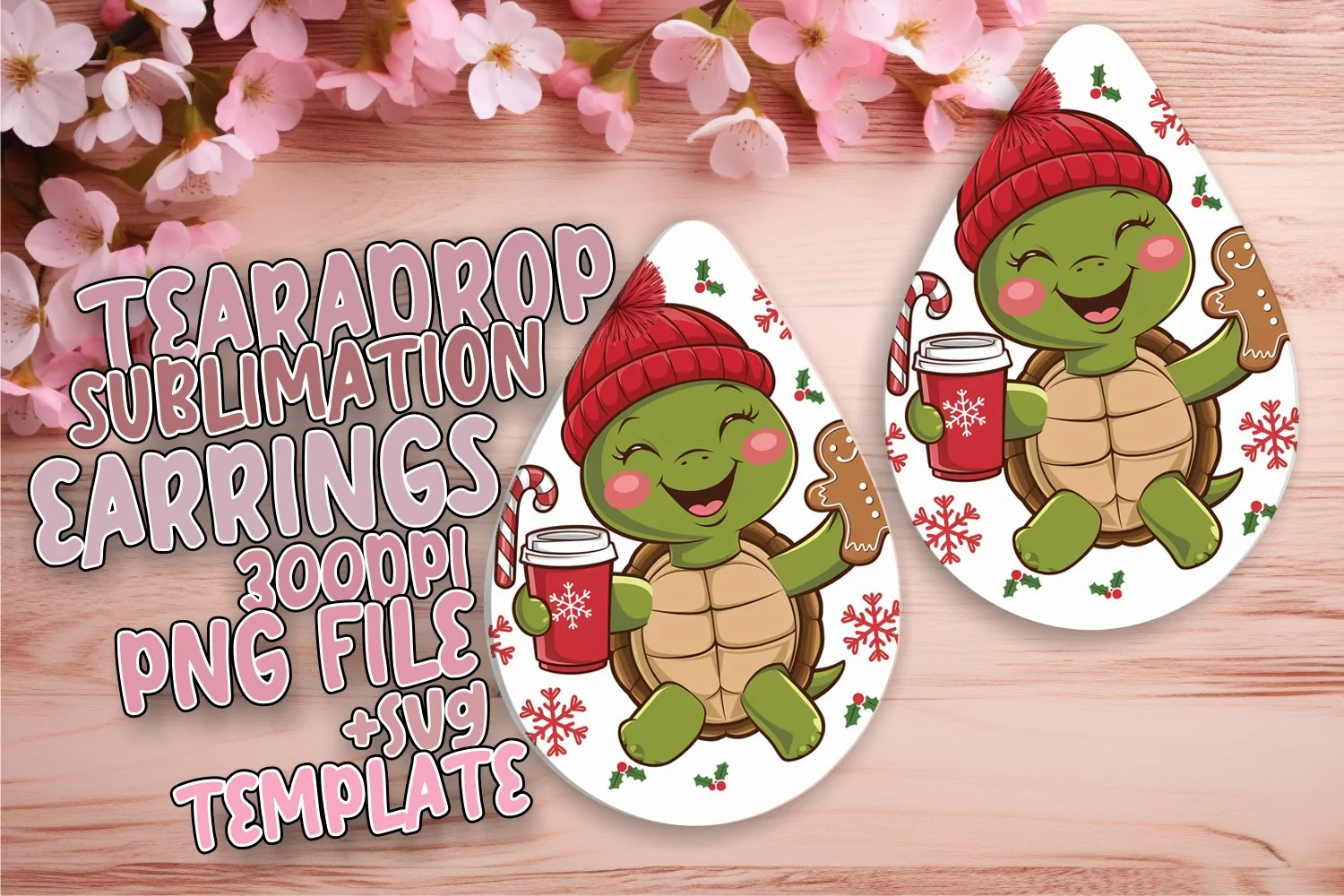 Artistic Teardrop Earrings Template PNG , Christmas example image 1