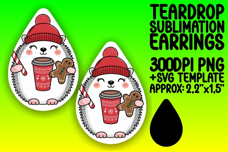 Playful Teardrop Earrings Template PNG , Christmas