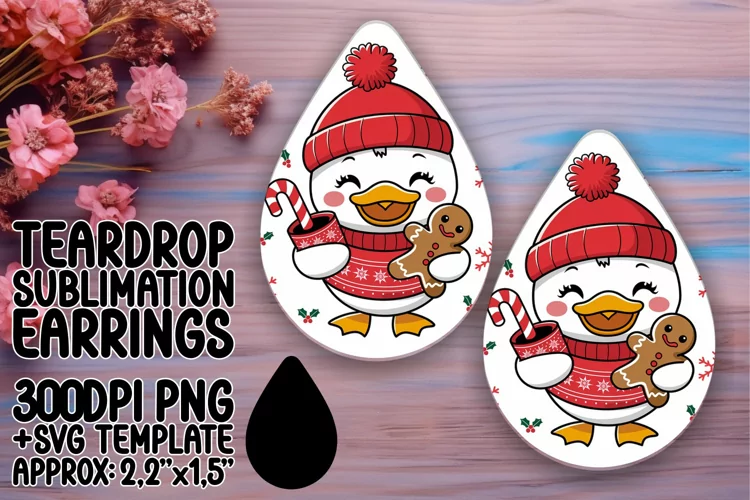 Unique Teardrop Earrings Template PNG , Christmas example image 1