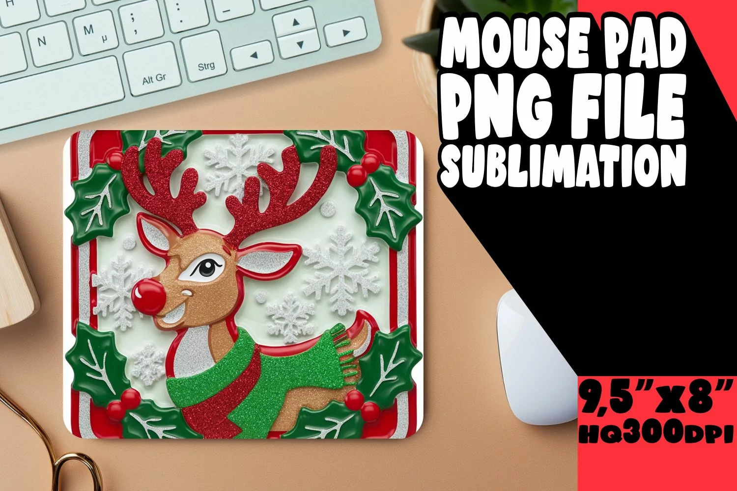 Sweet Desk Mat Sublimation Designs, 3D Xmas