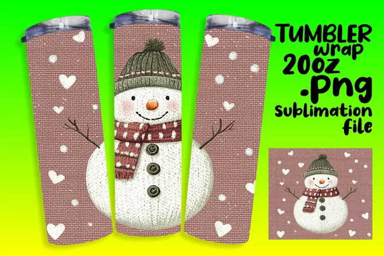 20oz Tumbler Design for Sublimation , Snowman