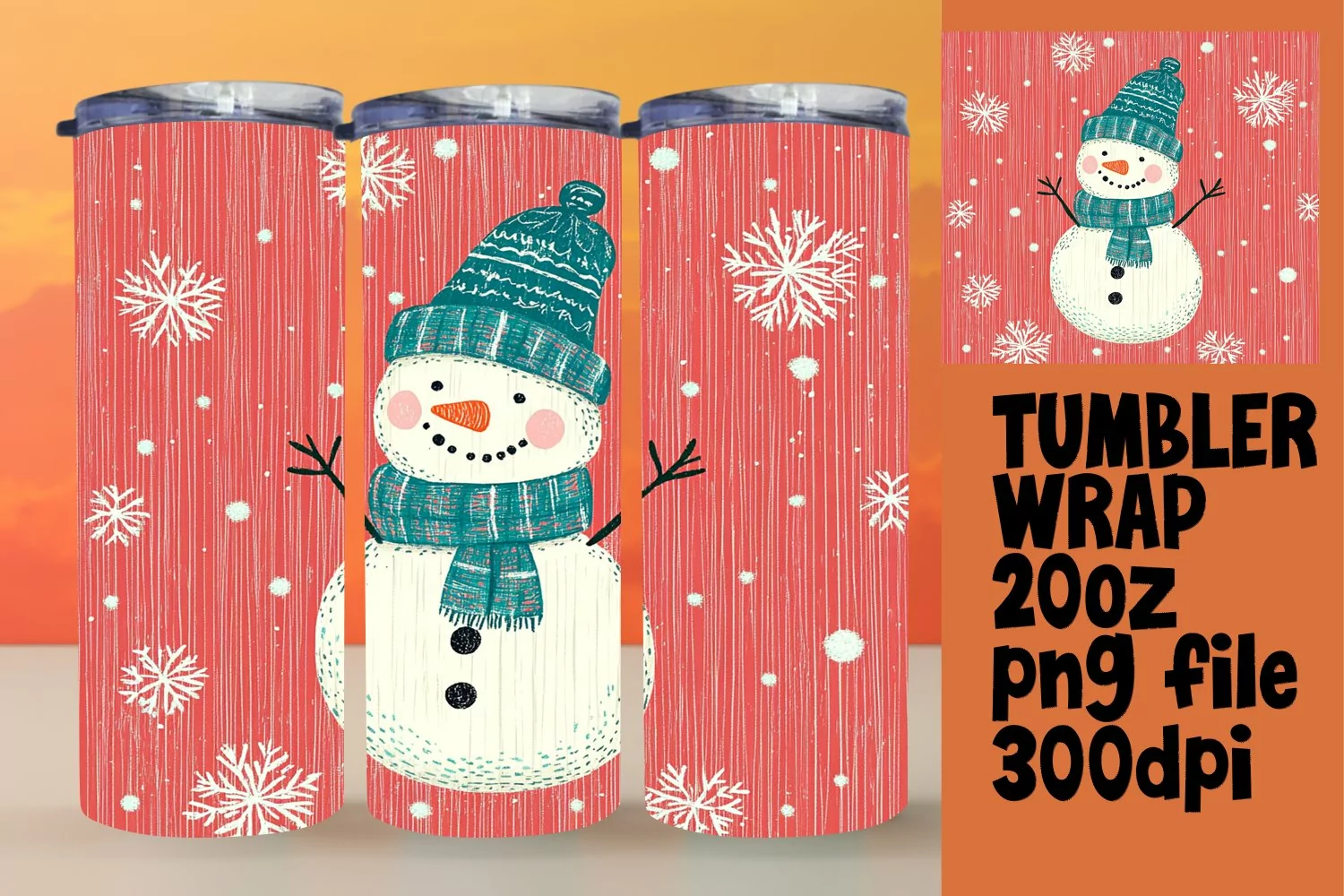 Playful 20oz Tumbler Template , Snowman example image 1
